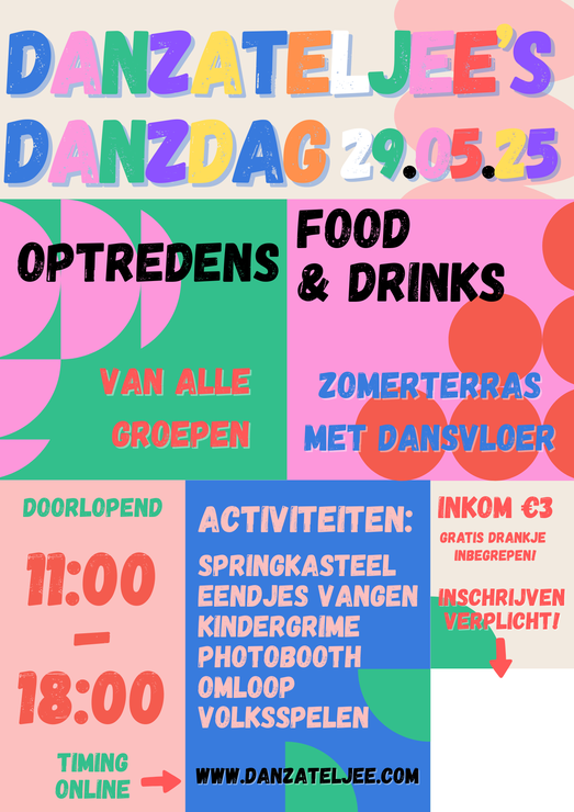 Op deze dag (lijkt wat op een schoolfeest) organiseren we doorlopend animatie en optredens van onze dansgroepen.